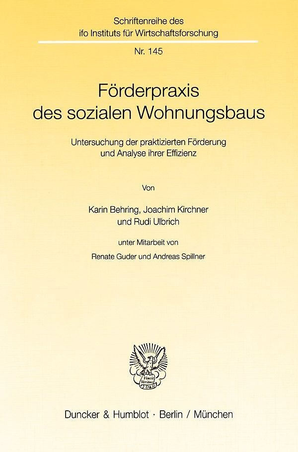Das mit diesem Buch publizierte Forschungsprojekt wurde in Kooperation zwischen Mitarbeitern des ifo Instituts für Wirtschaftsforschung München (Karin Behring) und des Instituts Wohnen und Umwelt Darmstadt (Joachim Kirchner und Rudi Ulbrich) im Auftrag des Bun...