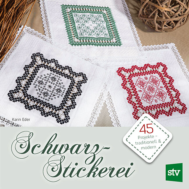 Bei der traditionellen Sticktechnik der Schwarzstickerei (engl. Blackwork) wurden ursprünglich Kragen, Bündchen und oft auch ganze Hauben aus hellem Stoff mit geometrischen Mustern und Ornamente in zarten schwarzen Linien bestickt. Später kamen auch florale Mu...
