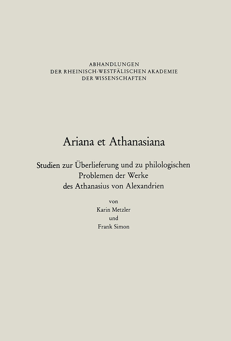 Der vorliegende Band enthält drei Studien zu überlieferungsgeschichtlichen, metrisch-textkritischen und grammatischen Problemen in den Schriften des Atha nasius von Alexandria. Sie sind aus der textkritischen und editorischen Arbeit an dogmatischen Hauptwerken...