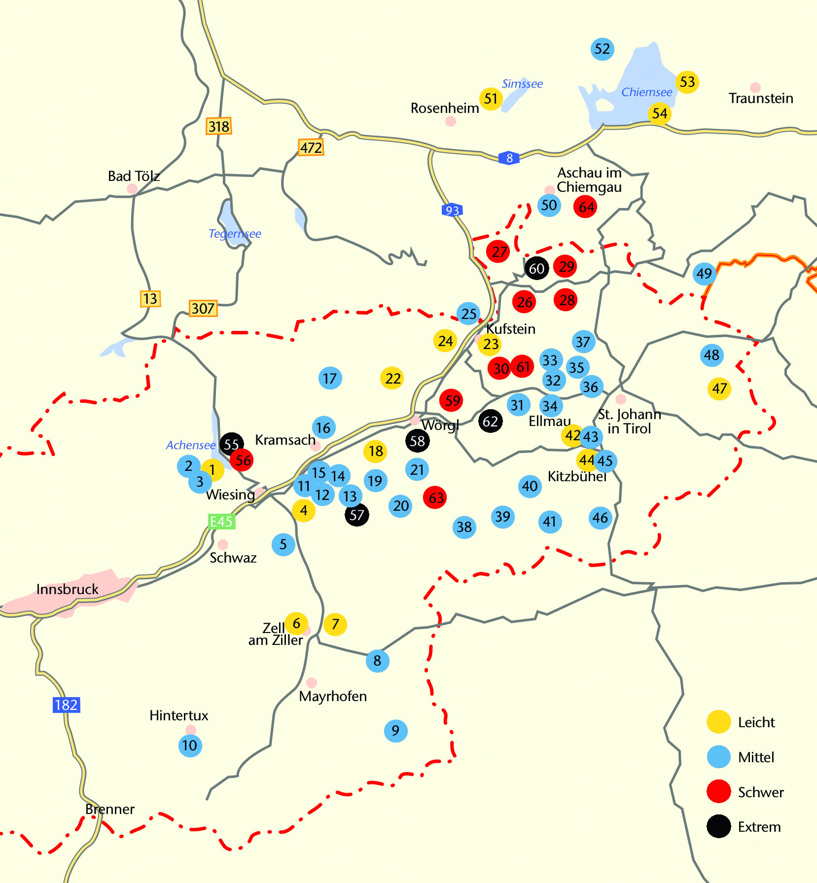 In dieser Region liegen Highlights wie z. B. der Wilde Kaiser, Kitzbühel, das Zillertal oder der wunderbare Achensee und damit eine unvergleichliche Häufung von herrlichen Touren. Von gemütlichen Almwanderungen mit beeindruckenden Bergpanoramen über leichte Go...