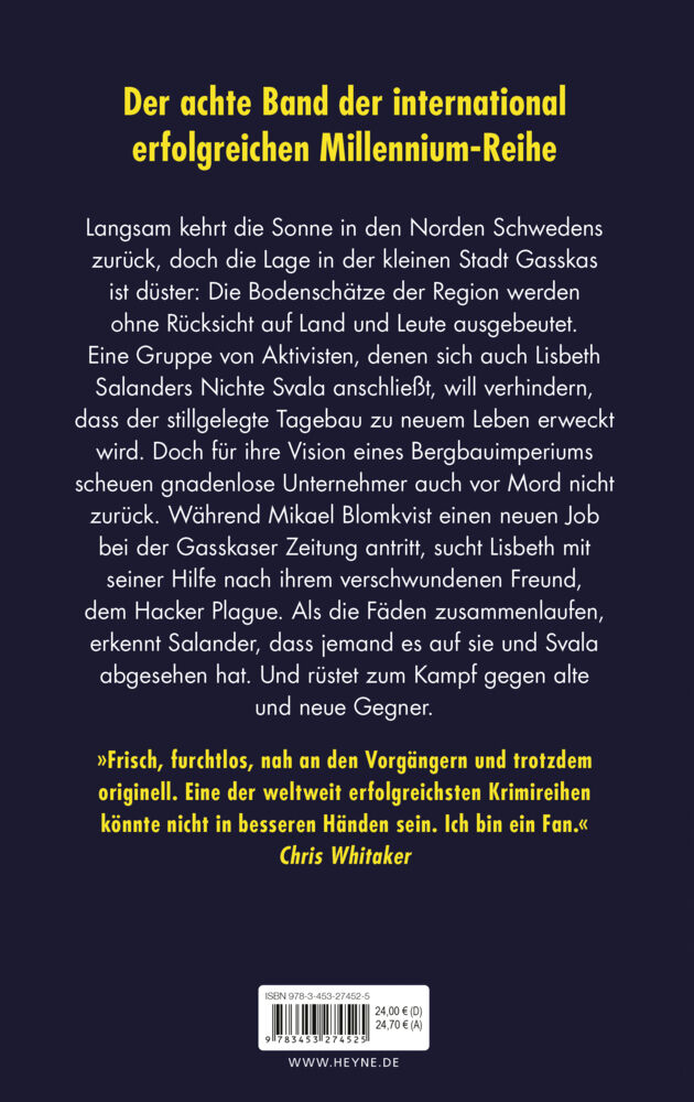 Der achte Band der international erfolgreichen Millennium-Reihe Langsam kehrt die Sonne in den Norden Schwedens zurück, doch die Lage in der kleinen Stadt Gasskas ist düster: Die Bodenschätze der Region werden ohne Rücksicht auf Land und Leute ausgebeutet. Ein...