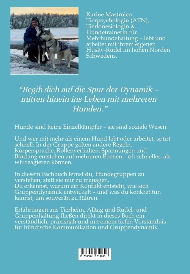 Das Buch beschäftigt sich mit dem Verhalten von Hunden in Gruppen mit allem, was dazugehört: Gruppendynamik, Körpersprache, Konfliktverhalten, Integration neuer Hunde, Ressourcenmanagement und der Rolle des Menschen als Gruppenleiter. Es zeigt praxisnah, wie m...