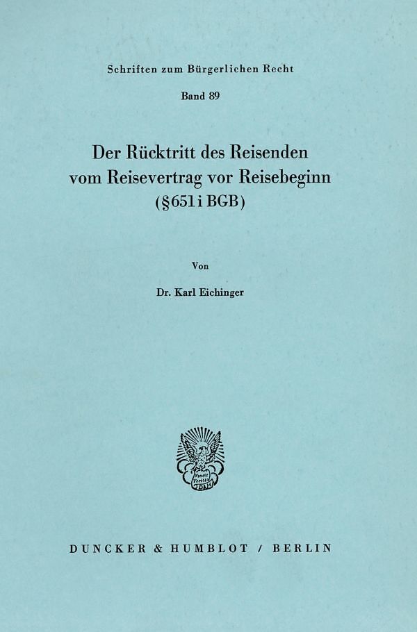 Der Rücktritt des Reisenden vom Reisevertrag vor Reisebeginn (§ 651 i BGB).