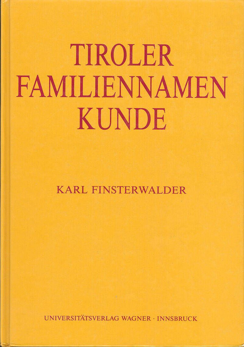 DIE ENTWICKLUNG DER TIROLER PERSONEN-, FAMILIEN- UND HOFNAMEN Im ersten, allgemeinen Teil dieses großen Standardwerkes zur Familiennamenkunde Tirols erforscht Karl Finsterwalder das sprachliche Werden der Namen, ihre Altersschichten und die kultur- und rechtsh...