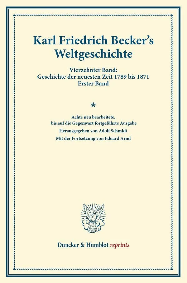 Im Rahmen des Projekts »Duncker & Humblot reprints« heben wir Schätze aus dem Programm der ersten rund 150 Jahre unserer Verlagsgeschichte, von der Gründung 1798 bis zum Ende des Zweiten Weltkriegs 1945. Lange vergriffene Klassiker und Fundstücke aus den B...