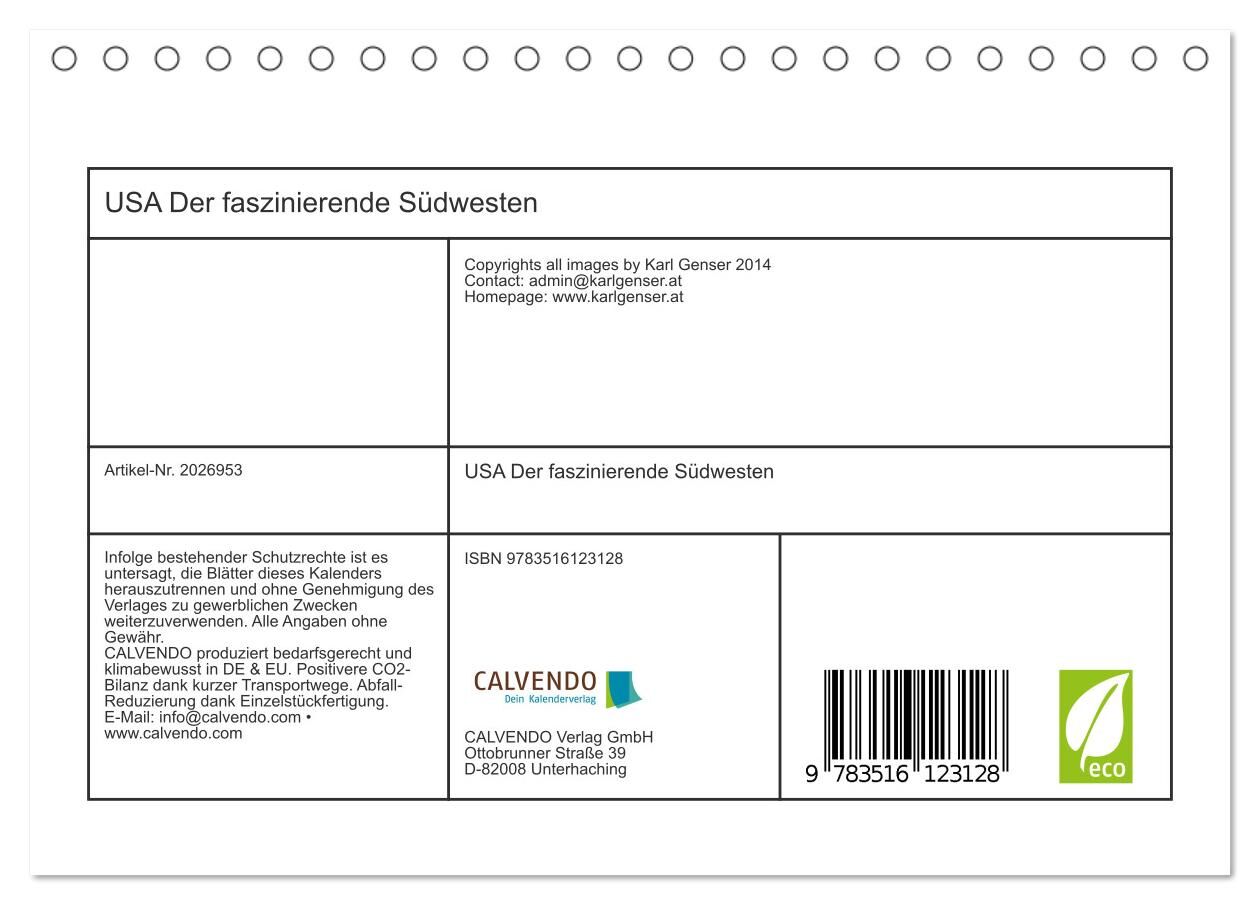 USA Der faszinierende Südwesten (Tischkalender 2026 DIN A5 quer), CALVENDO Monatskalender