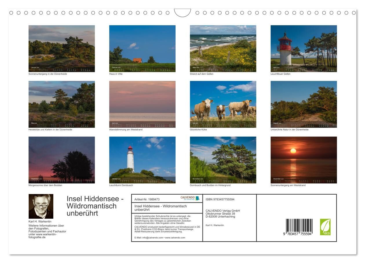Hiddensee ist eine der letzten naturbelassenen Inseln an der Deutschen Ostseeküste. Der Kalender des international tätigen Reisefotografen Karl H. Warkentin zeigt die unberührte Natur und Schönheit der Insel in zwölf besonderen Motiven vom Dornbusch im Norden ...