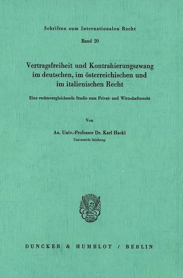 Vertragsfreiheit und Kontrahierungszwang im deutschen, im österreichischen und im italienischen Recht.