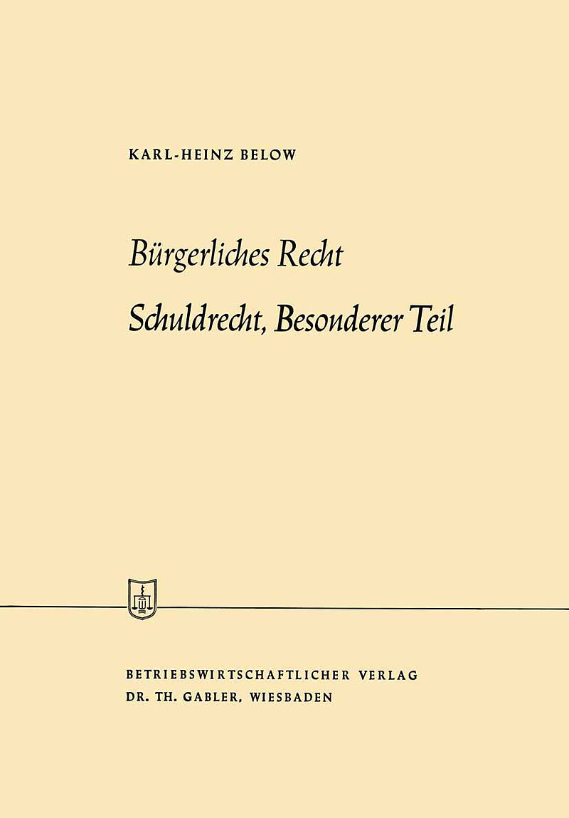 Von allen Gebieten des Burgerlichen Rechts ist fur den Wirtschaftswissen schaftler der Besondere Tell des Rechts der SchuldverhaItnisse eines der wichtigsten, vielleicht sogar das bedeutsamste. Denn unter den dort auf gezahlten, sehr heterogenen Materien begeg...