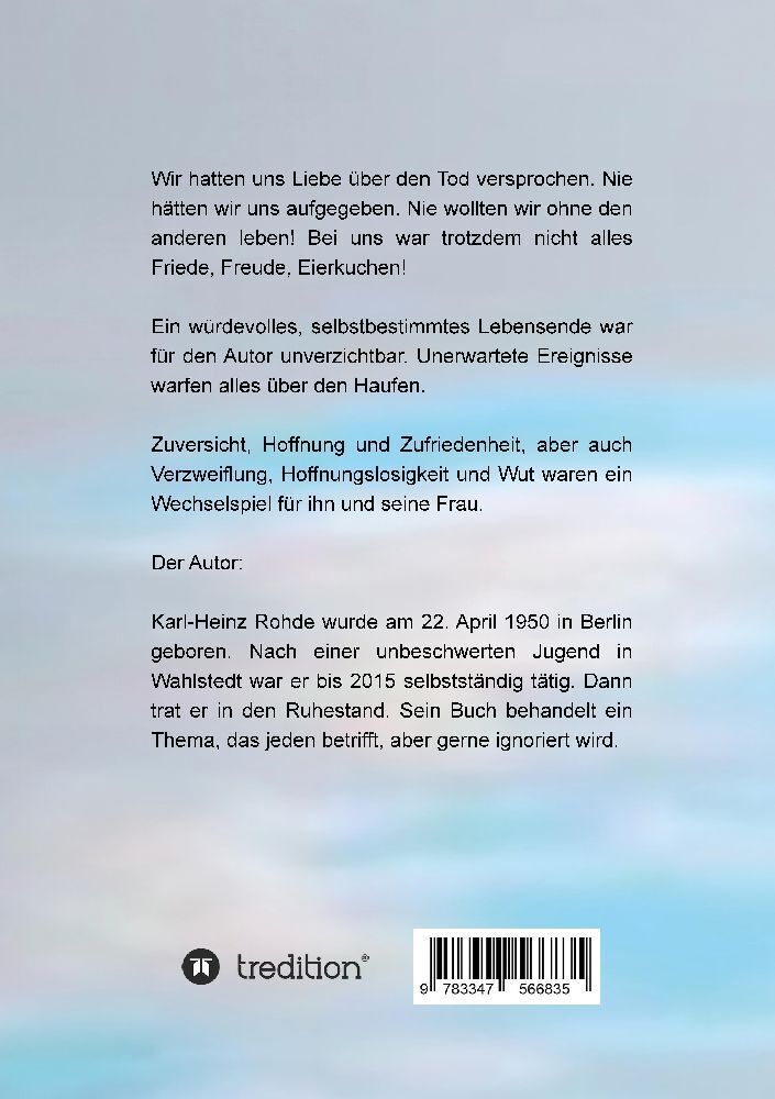 Um die Lebensgeschichte und das 'Selbstbestimmte Lebensende' zweier Menschen. Sie waren gute Freunde. Daraus wuchs eine große Liebe über den Tod hinaus. Jetzt kämpfen sie um ein würdevolles selbst bestimmtes Lebensende. Das Buch beschreibt die Ereignisse und d...