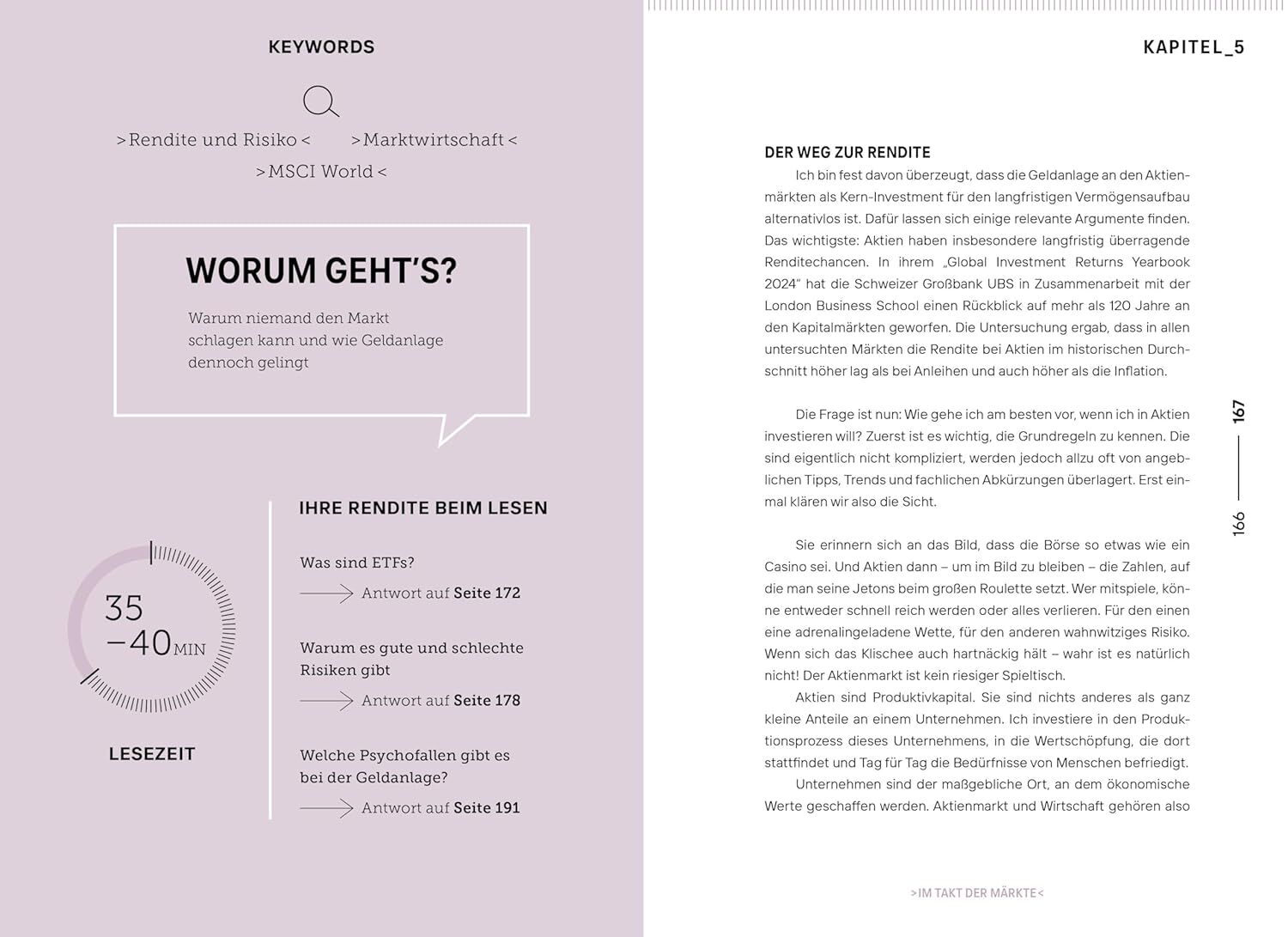 Finanzielles Wohlbefinden ist für unsere Lebensqualität ebenso wichtig wie Selbstfürsorge, Respekt und ein stabiles soziales Umfeld. Bestseller GELD IM GLÜCK ist das richtige Buch für alle, die sich eine smarte Anleitung für den Weg in das persönliche finanzielle Glück wünschen. In einer klaren Schritt-für-Schritt-Anleitung erfahren die Leserinnen und Leser, wie sie sicher und gewinnbringend Vermögen aufbauen. Wo sehe ich mich in Zukunft, was möchte ich im Leben erreichen? Wie starte ich mit der Geldanlage? Was sind die Anfängerfehler welches die psychologischen Fallen bei Investitionen? Wie investiere ich langfristig in ETFs, und wo soll ich mein Geld in Krisenzeiten anlegen? GELD IM GLÜCK kennt die wichtigsten Fragen und Antworten einer individuellen Finanzplanung für die Zukunft. Kapitel für Kapitel werden aus Einsteigern versierte, selbstbewusste Akteure und Akteurinnen auf dem Finanzparkett. Dabei unterstützen illustrative Guidelines und ganz unterschiedliche Erfahrungsberichte. Investieren lernen und Geld anlegen der richtige Zeitpunkt ist immer: jetzt! Wer dieses Buch liest, wird Geldanlage endlich verstehen und loslegen wollen.
