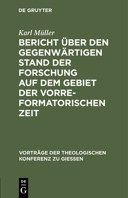 Keine ausführliche Beschreibung für "Bericht über den gegenwärtigen Stand der Forschung auf dem Gebiet der vorreformatorischen Zeit" verfügbar. Inhalt Frontmatter -- Der Begriff der Offenbarung -- Bericht über den gegenwärtigen Stand der Forschung au...
