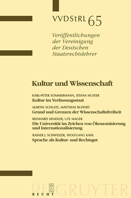 Autorentext Containing also: Kultur im Verfassungsstaat. Grund und Grenzen der Wissenschaftsfreiheit. Die Universität im Zeichen von Ökonomisierung und Internationalisierung. Sprache als Kultur- und Rechtsgut Klappentext Der Band enthält die Berichte und Disku...