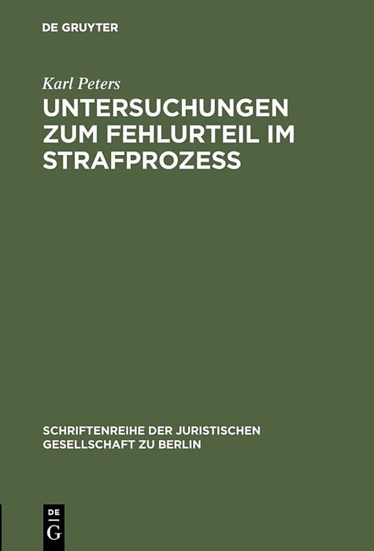 Keine ausführliche Beschreibung für "Untersuchungen zum Fehlurteil im Strafprozeß" verfügbar. Klappentext Gegründet im Jahr 1859, zählt die Juristische Gesellschaft zu Berlin zu den ältesten ihrer Art in Europa und blickt auf eine lange Tradition zur...