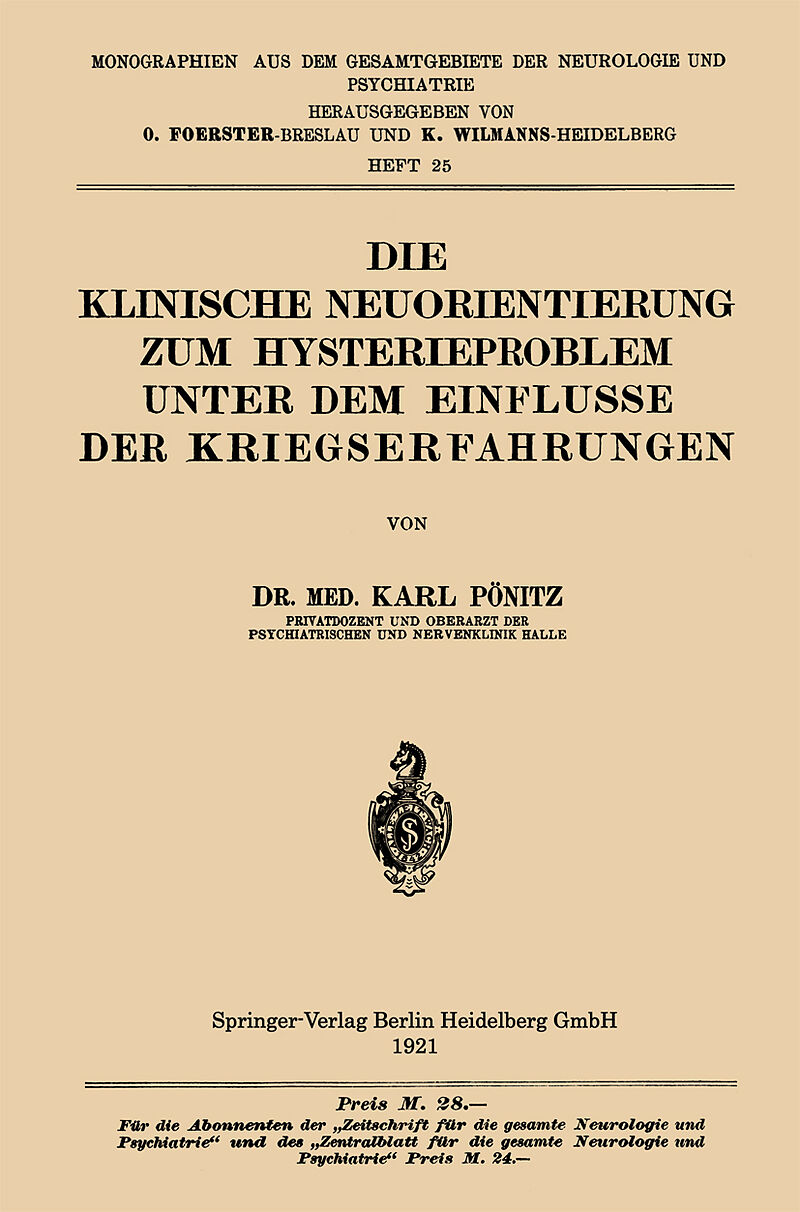Die Klinische Neuorientierung zum Hysterieproblem unter dem Einflusse der Kriegserfahrungen