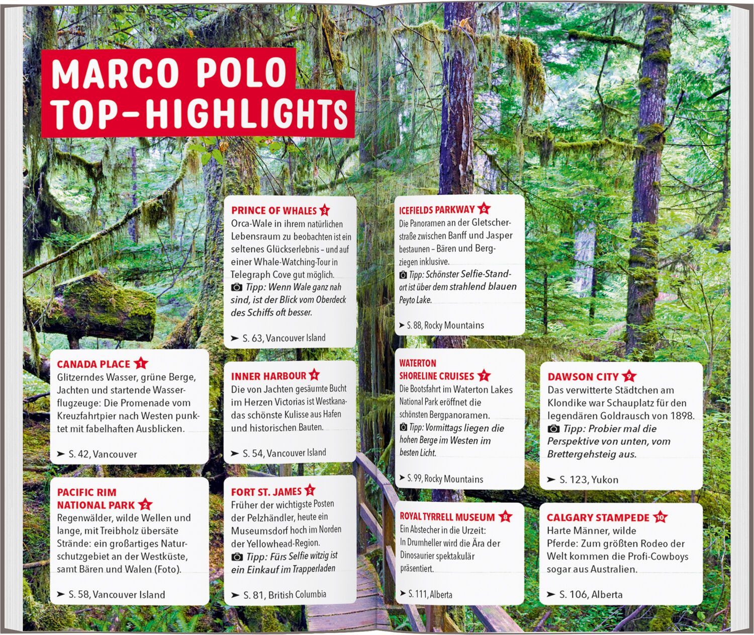 Gipfel, Gletscher und Grizzlys: Mit dem MARCO POLO Reiseführer Kanada West die Rocky Mountains & Vancouver erkunden Wale beobachten, den Pacific Rim Nationalpark durchwandern oder eine Nacht wie die Trapper zwischen Palisaden und Biberfellen im Fort St. J...