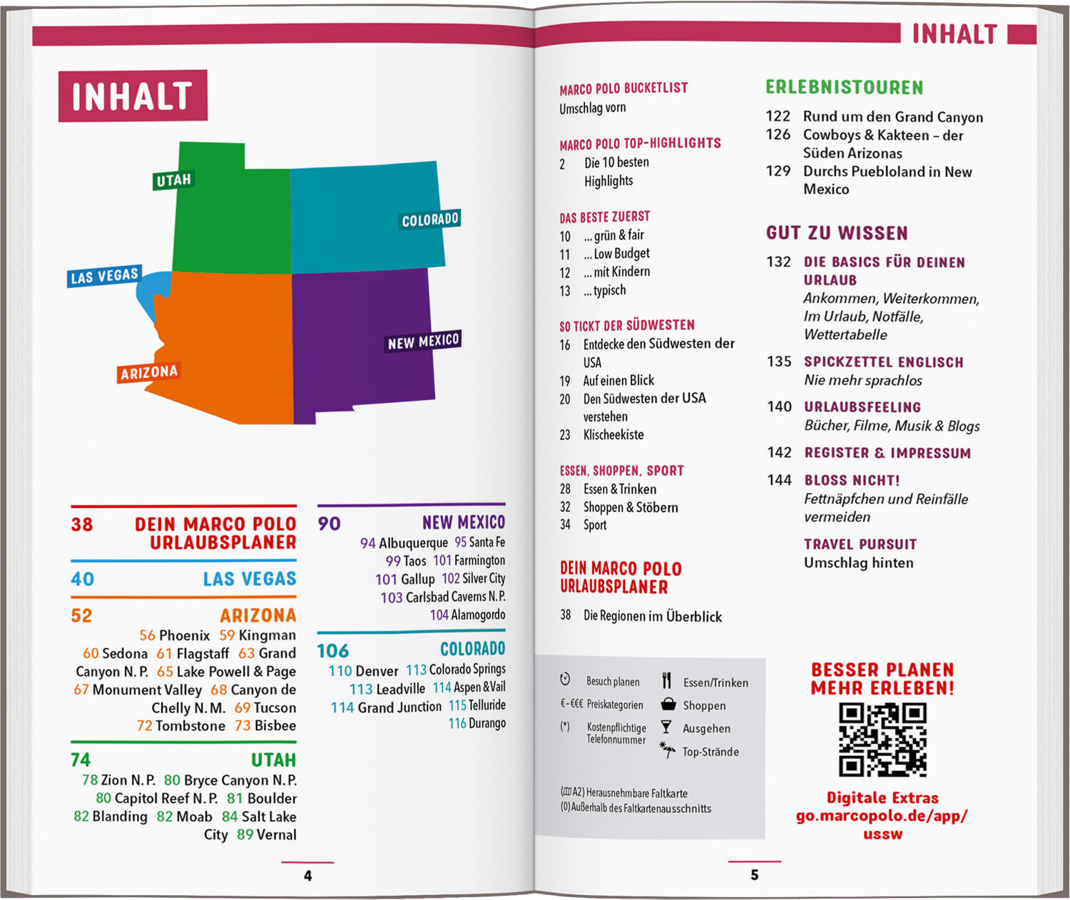 Mit dem MARCO POLO Reiseführer durch den Südwesten der USA : Entdecke Las Vegas, Colorado, New Mexico, Arizona, Utah, Rote Canyons, uralte Siedlungen, riesige Kakteen und mittendrin glitzernde Großstädte: Kaum eine Region der USA ist so gegensätzlich wie die ...