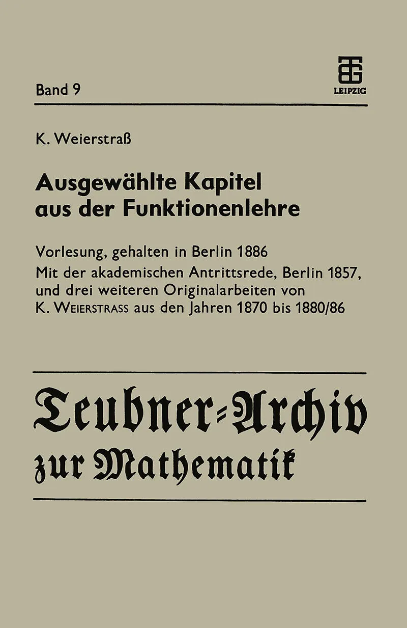 Als Schüler von KARL WEIERSTRASS zu Beginn unseres Jahrhunderts an der Ausgabe der Werke ihres Lehrers arbeiteten, ging es ihnen vor allem darum, den nachfolgenden Generationen den Schatz der unveröffentlichten Weierstraßschen Vorlesungen über elliptische und ...