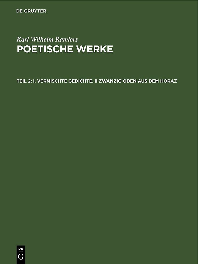 Keine ausführliche Beschreibung für "I. Vermischte Gedichte. II Zwanzig Oden aus dem Horaz" verfügbar. Inhalt Frontmatter -- INHALT -- VERMISCHTE GEDICHTE -- I. Der May. (1758) -- II. Das Fest des Daphnis und der Daphne. (1769) -- III. lno, eine Cant...