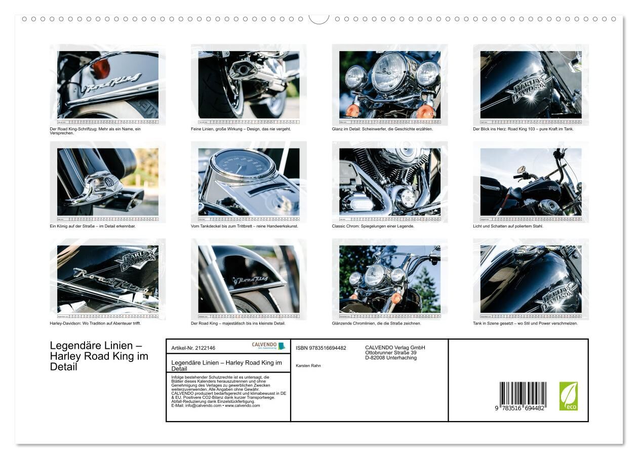 Erlebe jeden Monat ein Stück Freiheit auf zwei Rädern! Dieser exklusive Kalender zeigt die Harley-Davidson Road King Classic 103 in meisterhaften Detailaufnahmen: vom funkelnden Chrom über kraftvolle Linien bis hin zu den ikonischen Designelementen. Er ist per...