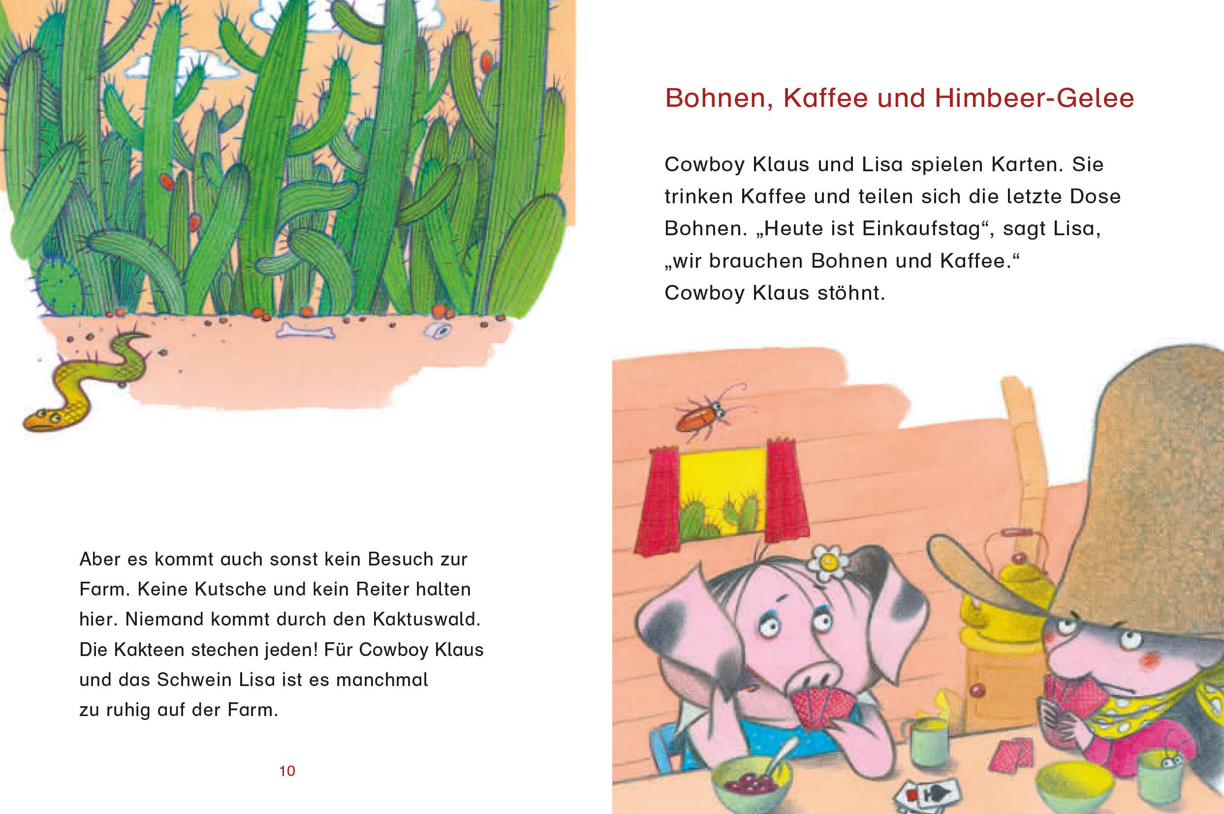 "Cowboy Klaus lebt zusammen mit seinem Schwein Lisa auf der Farm ""Kleines Glück"" im Wilden Westen. Wenn er zum Einkaufen in die Stadt will, muss er jedes Mal seinen Taucheranzug anziehen, denn rund um die Farm wächst ein riesengroßer Kaktuswald. Doch dann ha...
