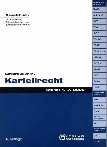 Die 4. Auflage des Gesetzbuches Kartellrecht enthält alle kartellrechtlichen Vorschriften Österreichs und der Europäischen Union in ihrer aktuellen Fassung, neu das Verbraucherbehörden-Kooperationsgesetz, das ECN-Kronzeugenregelungsmodell (ECNKM), die Mitteilu...