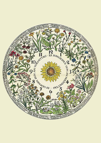 Viele Blumen öffnen und schließen ihre Blüten jeweils zu einer bestimmten Zeit. Wie man damit die Zeit bestimmt, zeigt die Blumenuhr nach dem berühmten Naturforscher Carl von Linné. Fünf Postkarten mit dem zauberhaften Motiv der Blumenuhr mit passenden Umschlä...
