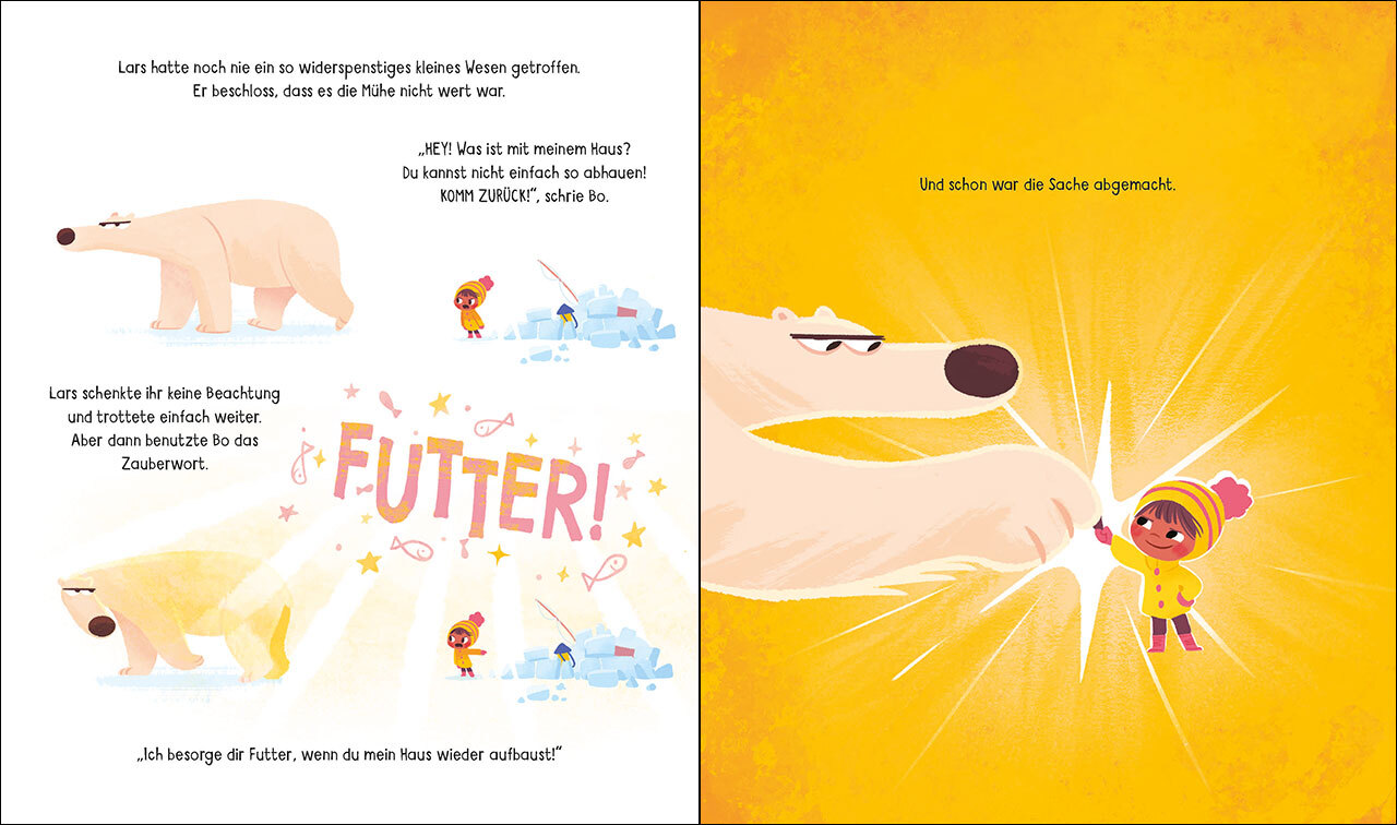 Loewe-Bücher: garantiert ohne KI Eine außergewöhnliche Freundschaft mit Bo und Eisbär Lars Ganz allein mitten in der Arktis, lebt das kleine Mädchen Bo. Eigentlich kommt sie dort sehr gut zurecht, aber mitten im Eis ist es ziemlich einsam. Bo wünscht sich sehnlichst Gesellschaft. Alles ändert sich, als der grummelige und echt hungrige Eisbär Lars in ihr Haus kracht und es zerstört. Die clevere Bo schlägt ihm einen Deal vor: Sie besorgt ihm Futter und er repariert dafür ihr Heim. Ob Lars den Deal einhalten wird? Oder hat er andere Pläne für seinen Speiseplan ...? Ein urkomisches und wunderschön illustriertes Bilderbuch über eine ganz besondere Freundschaft! - Für Kinder ab 4 Jahren - Eine außergewöhnliche Freundschaft die ans Herz geht - Ideal zum gemeinsamen Kuscheln, Lesen, Lachen und Entdecken - Warmherzig und humorvoll - hier schütten sich Klein und Groß aus vor Lachen - Diese sympathischen Figuren schließt man sofort ins Herz - Wichtige Message: Wir müssen aufeinander und unsere Umwelt achten - Macht subtil auf den Klimawandel aufmerksam - Klare und prägnante Texte balancieren geschickt Humor, Spannung und Fantasie - Lebhafte, humorvolle und unverwechselbare Illustrationen