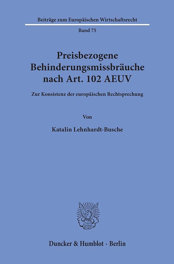 Die Arbeit untersucht die Frage, ob die Rechtsprechung der europäischen Gerichte zu preisbezogenen Behinderungsmissbräuchen nach Art. 102 AEUV von konsistenten Bewertungsmaßstäben geprägt ist. Hierzu wird die einschlägige Rechtsprechung zu den Fallgruppen der ...