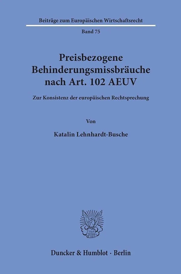 Die Arbeit untersucht die Frage, ob die Rechtsprechung der europäischen Gerichte zu preisbezogenen Behinderungsmissbräuchen nach Art. 102 AEUV von konsistenten Bewertungsmaßstäben geprägt ist. Hierzu wird die einschlägige Rechtsprechung zu den Fallgruppen der ...