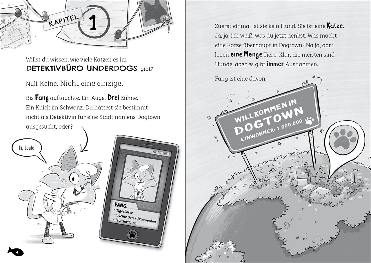 Die Bewohner von Dogtown brauchen dringend Hilfe, denn ein berüchtigter Dieb treibt dort sein Unwesen. Ein Fall für die Underdogs! Barkley, Karl und Dr. Flecki sind sofort zur Stelle Oh, und Fang, eine Katze. Ganz genau, eine KATZE will Hundedetektivin werden! Aber die Underdogs können Unterstützung gut gebrauchen, denn ihre größten Rivalen, die Top Dogs, machen ihnen ihre Fälle streitig. Die Detektive benötigen dringend eine heiße Spur. Und vielleicht hat Fang genau das richtige Näschen für diesen Fall?!