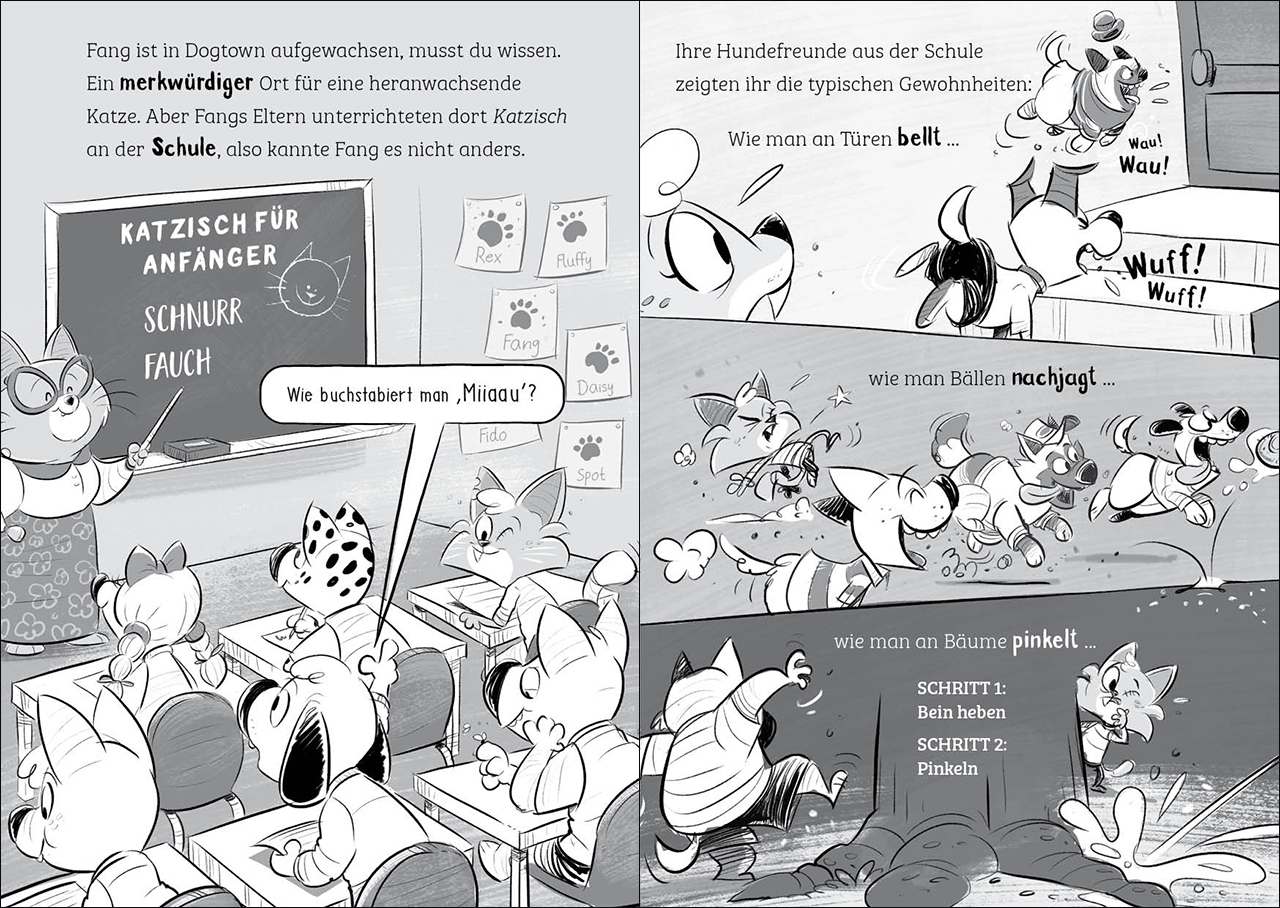 In Band 1 dieser witzigen und actionreichen Detektivgeschichte kommen Hunde- und Katzenfans ab 7 Jahren auf ihre Kosten. Das innovative Text-Bild Verhältnis und die lustige Geschichte werden nicht nur Kinder auf eine rasante Fahrt durch spannende Fälle mitnehmen. Nebenbei wird noch eine tolle Botschaft vermittelt: Sei einfach so, wie du bist! Es ist nicht schlimm, anders zu sein.