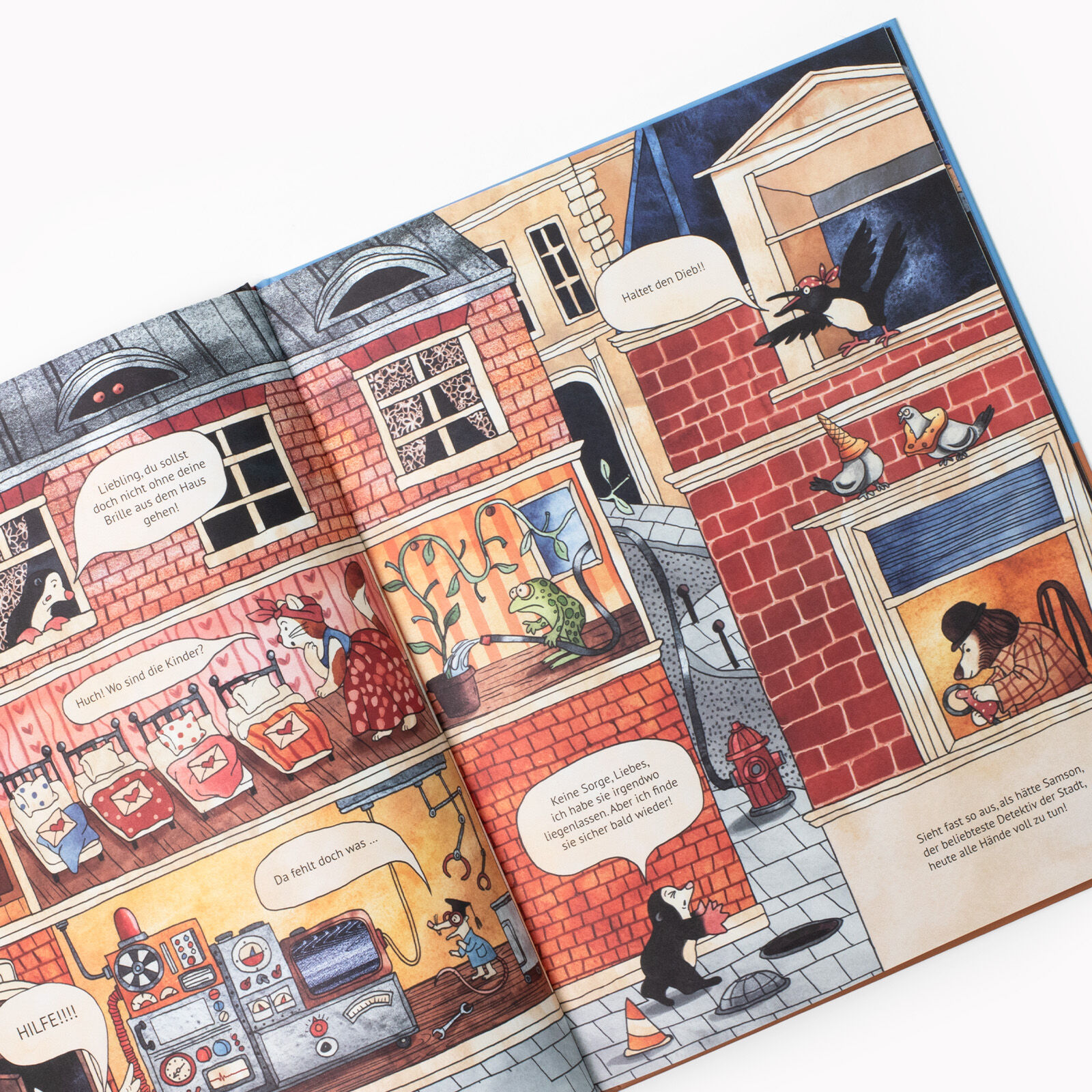 Samson ist der beste Hundedetektiv der Stadt. Heute braucht er seine ganze Kraft und sein Know-how als Ermittler, um den Habseligkeiten auf die Spur zu kommen, die die anderen Tiere als vermisst melden: Die Eier der Henne sind verschwunden! Der wertvolle Schm...