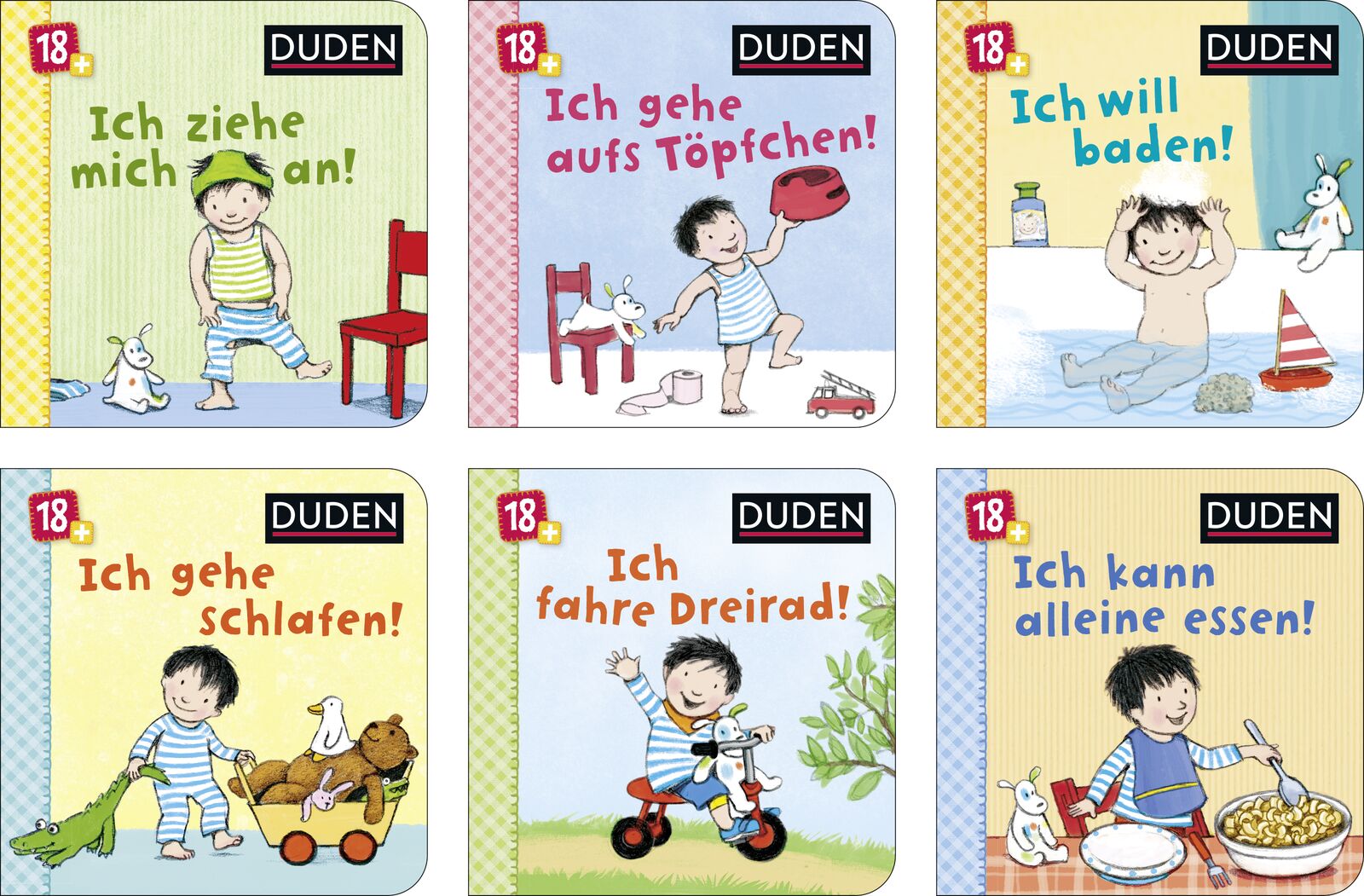 Duden - von Anfang an richtig! Quadratisch, gut und viele Geschichten drin! Sechs kleine Bücher für Kinder ab 18 Monaten mit allen wichtigen Themen, die für Eltern und Kind wichtig sind oder wichtig werden: Anziehen, Essen, aufs Töpfchen gehen, Dreiradfahren, ...