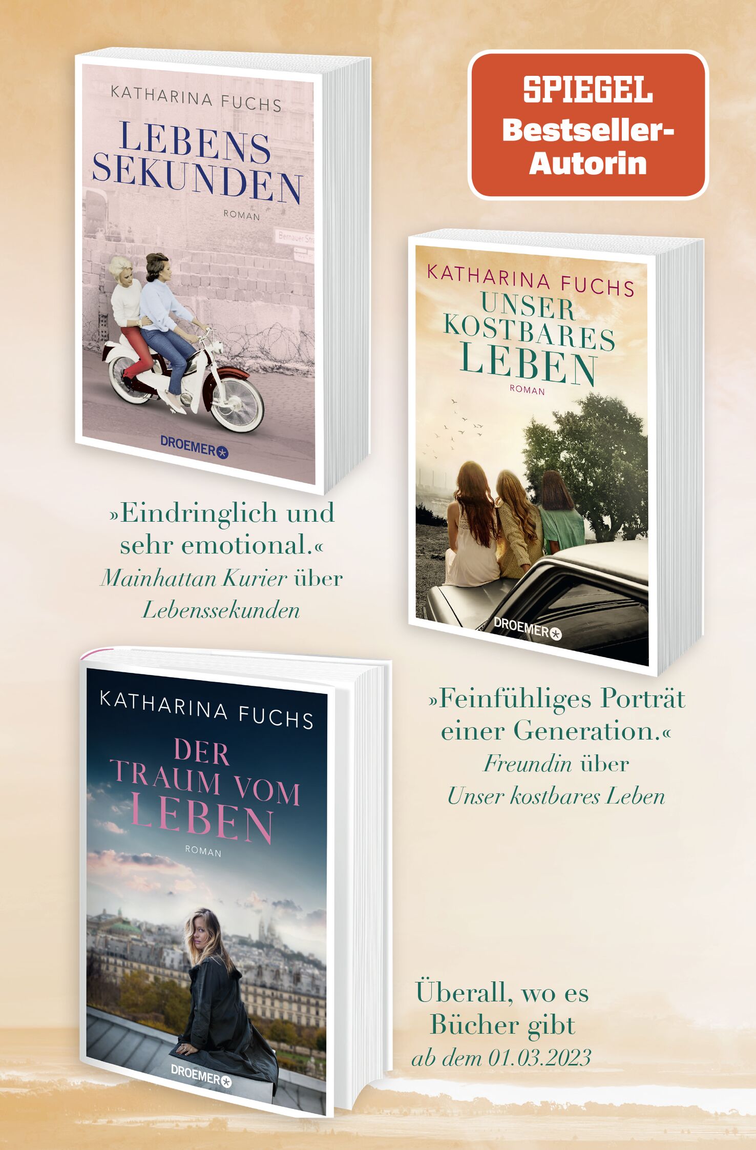 Eine Epoche im Umbruch - Die Geschichte zweier Jahrzehnte: Drei Frauen gehen ihren Weg Im zeitgeschichtlichen Roman »Unser kostbares Leben« erzählt Bestseller-Autorin Katharina Fuchs von ihrer eigenen Kindheit : Drei junge Frauen rebellieren gegen gesellschaf...