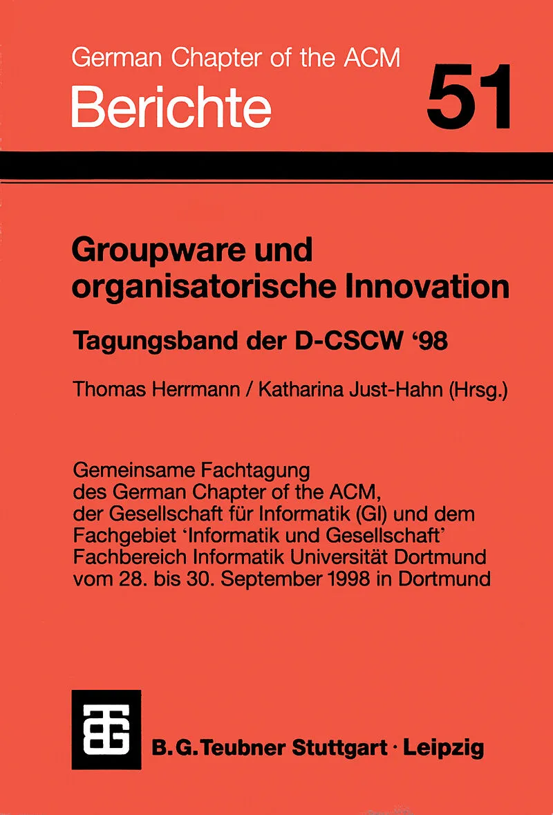 Gemeinsame Fachtagung des German Chapter of the ACM, der Gesellschaft für Informatik (GI) und dem Fachgebiet 'Informatik und Gesellschaft' Fachbereich Informatik Universität Dortmund vom 28. - 30.9.1998 in Dortmund Die Deutsche Tagung zu Computer Sup...
