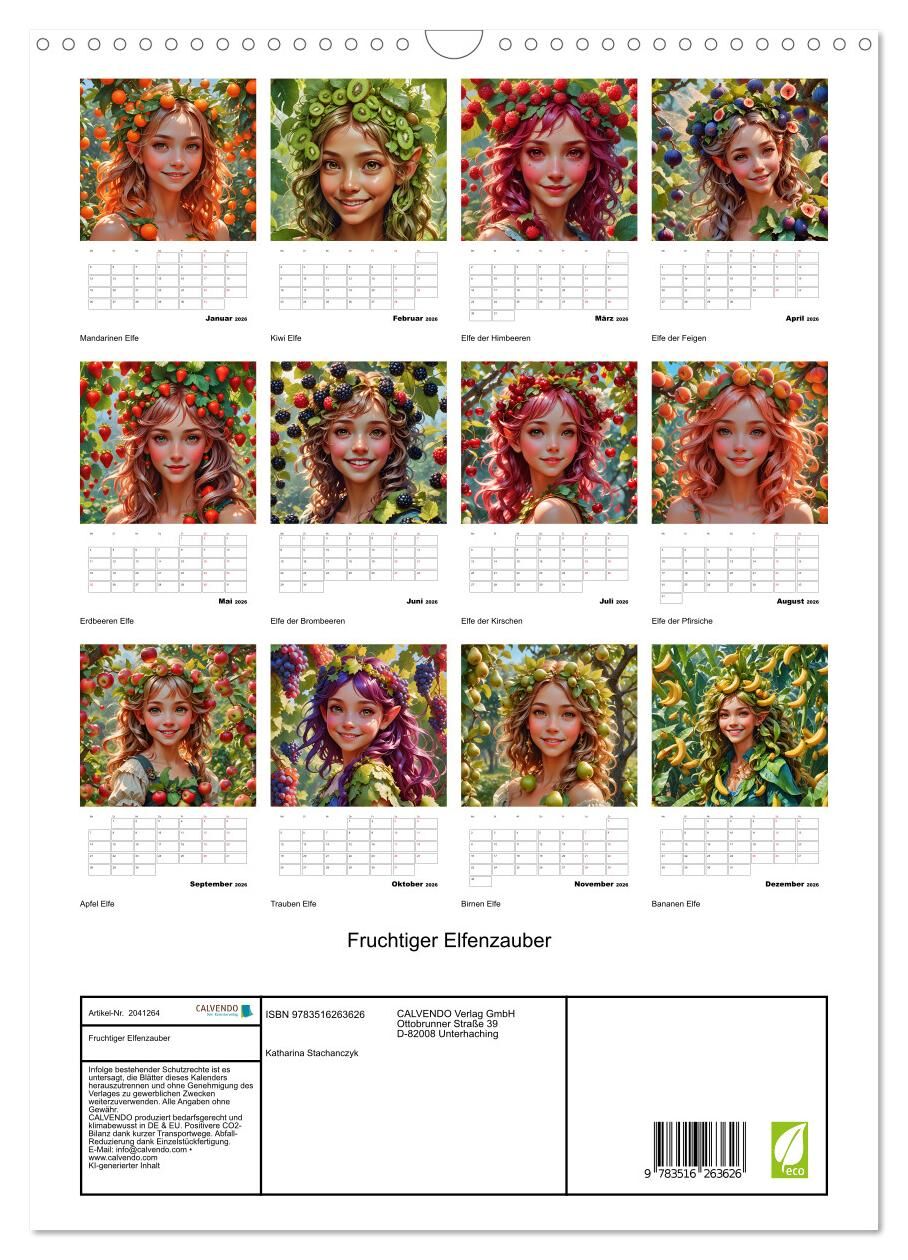 Fruchtiger Elfenzauber (Wandkalender 2026 DIN A3 hoch), CALVENDO Monatskalender