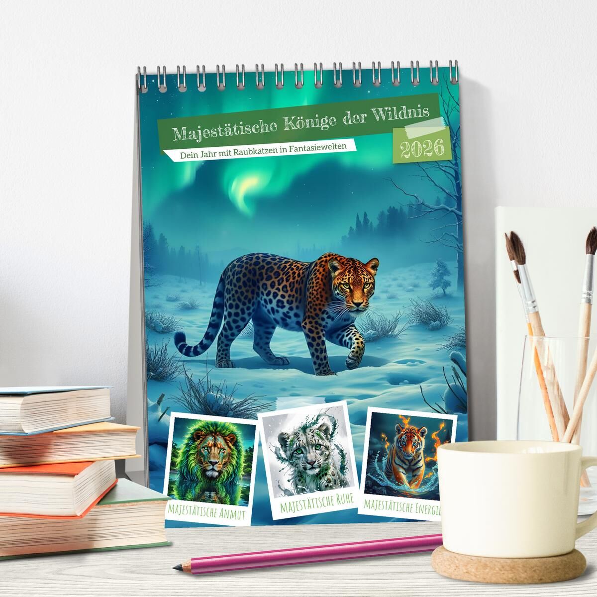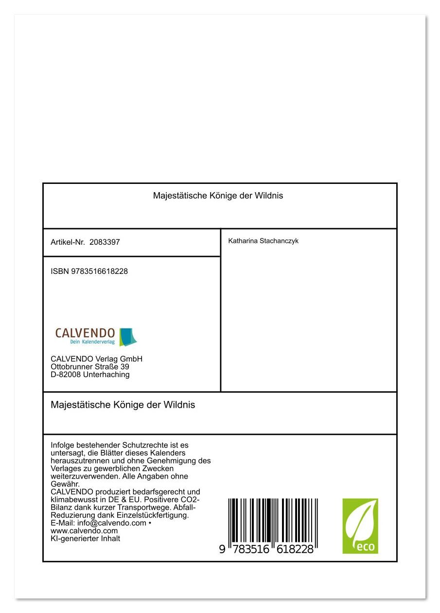 Lass dich ein Jahr lang begleiten von der stillen Macht und wilden Schönheit der majestätischsten Raubtiere. Dieser mit KI gestalteter Kalender entführt dich in die geheimnisvollen Reiche von Savanne, Dschungel und Schnee. Erlebe Löwen, Leoparden und Tiger in ...
