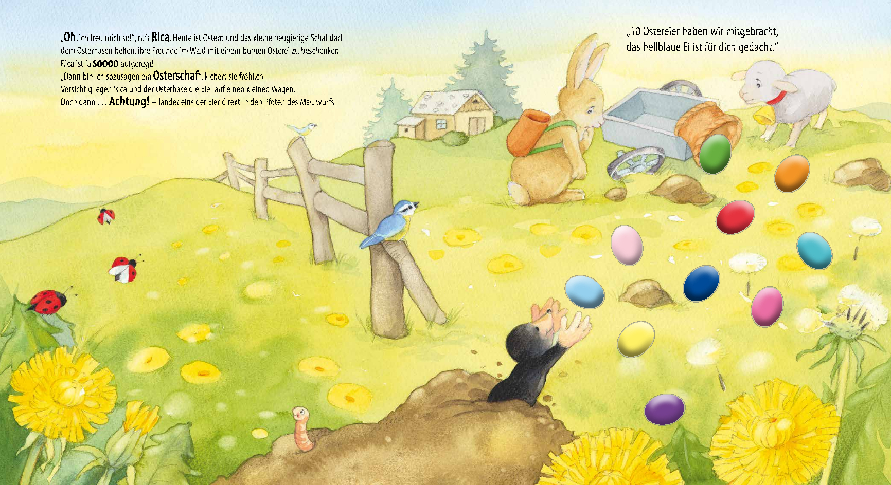 Das Bilderbuch zu Ostern für Kinder ab 4 Jahren: Rica verschenkt zusammen mit dem Osterhasen Ostereier an ihre Freunde im Wald. Spielerisch lernen die Kleinsten das Zählen und verschiedene Farben. Ein lustiges Kinderbuch zu Ostern - ein Bilderbuch mit Funkelst...