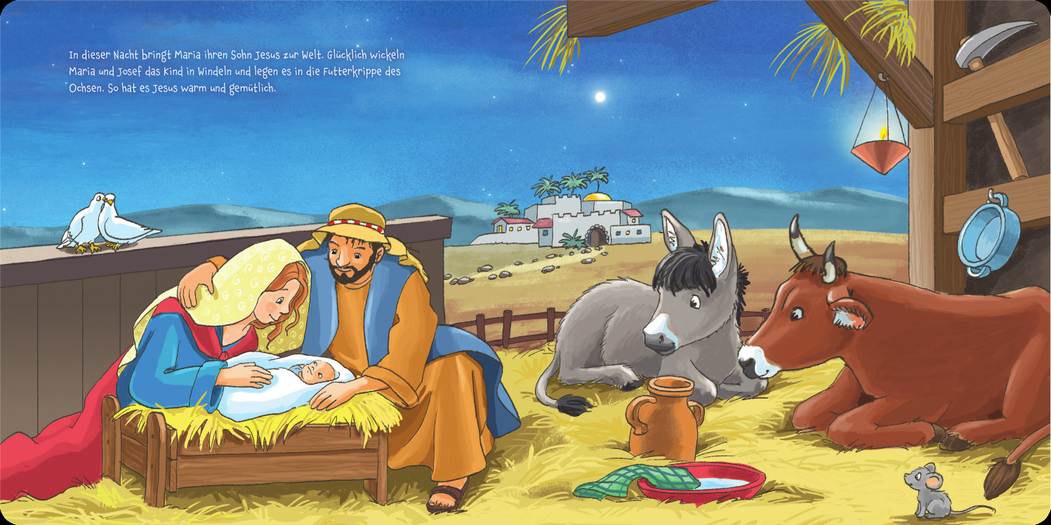 Die Weihnachtsgeschichte für die Kleinsten - ein Pappbilderbuch für Kinder ab 3 Jahren: In diesem Büchlein wird die biblische Weihnachtsgeschichte rund um Maria, Josef und die Geburt von Jesus für die Kleinsten erzählt und stimmungsvoll illustriert. Autorentex...