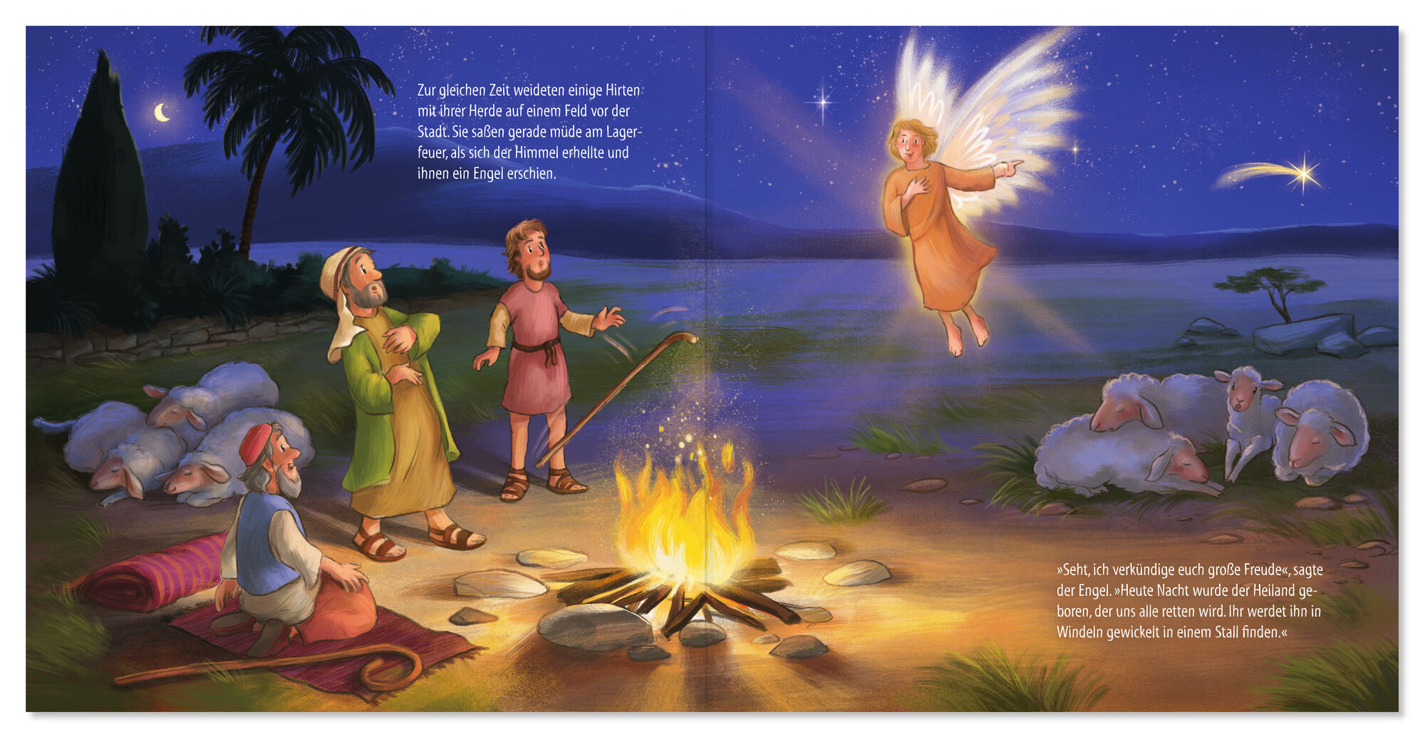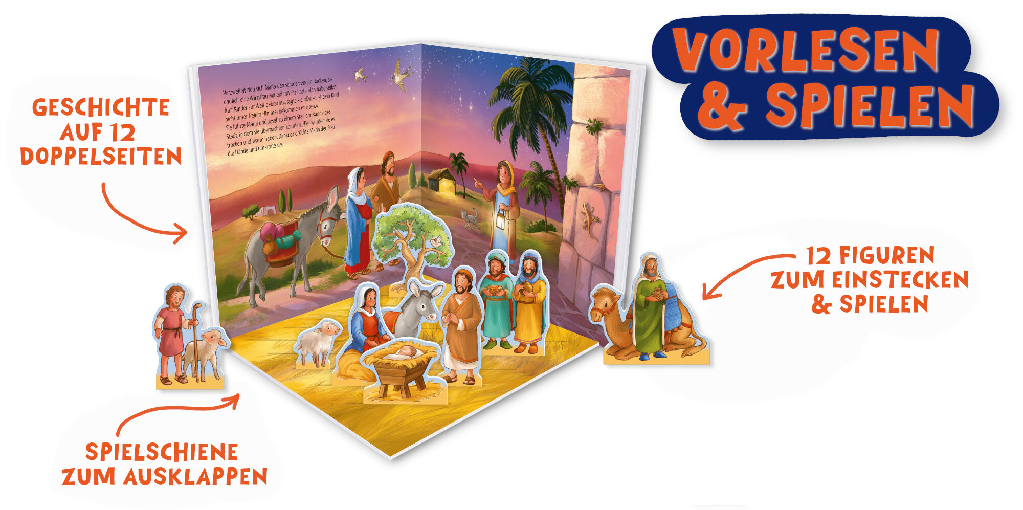 Die Weihnachtsgeschichte für Kinder ab 4 Jahren - Vorlesen und Spielen. Dieses Pappbilderbuch erzählt die klassische Weihnachtsgeschichte für die Allerkleinsten. Ein ganz Besonderes Bilderbuch - Zum Anschauen, Vorlesen und Spielen. Mit 12 Steckfiguren die pass...