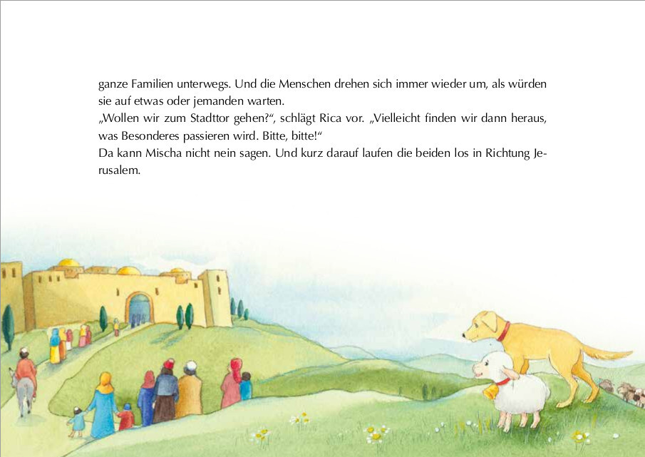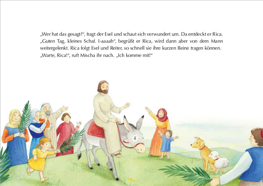 Die Ostergeschichte für die Kleinsten! - Ein Bilderbuch zu Ostern für Kinder ab 3 Jahren: Es herrscht große Aufregung in Jerusalem, als Jesus auf einem Esel in die Stadt reitet. Die Menschen jubeln ihm zu und das kleine neugierige Schaf Rica möchte unbedingt w...