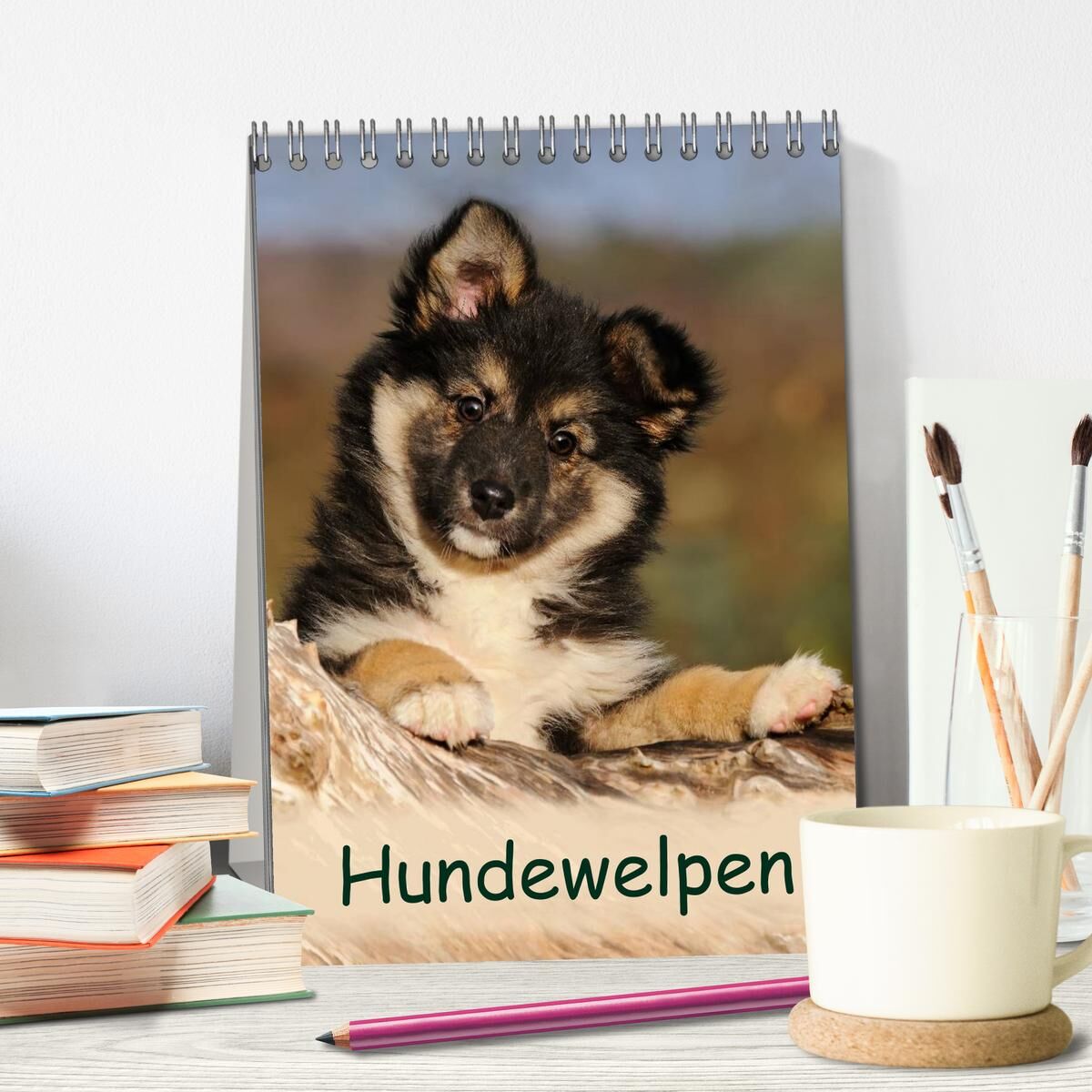 Hundekinder schauen Dich mit treuen Augen an. Niedliche Welpenbilder verschiedener Hunderassen (Islandhund, Wachtelhund, Berger Picard, Golden Retriever, Dalmatiner, Akita, Labrador, Australian Shepherd) begleiten den Hundefreund durch das ganze Jahr Hundekind...