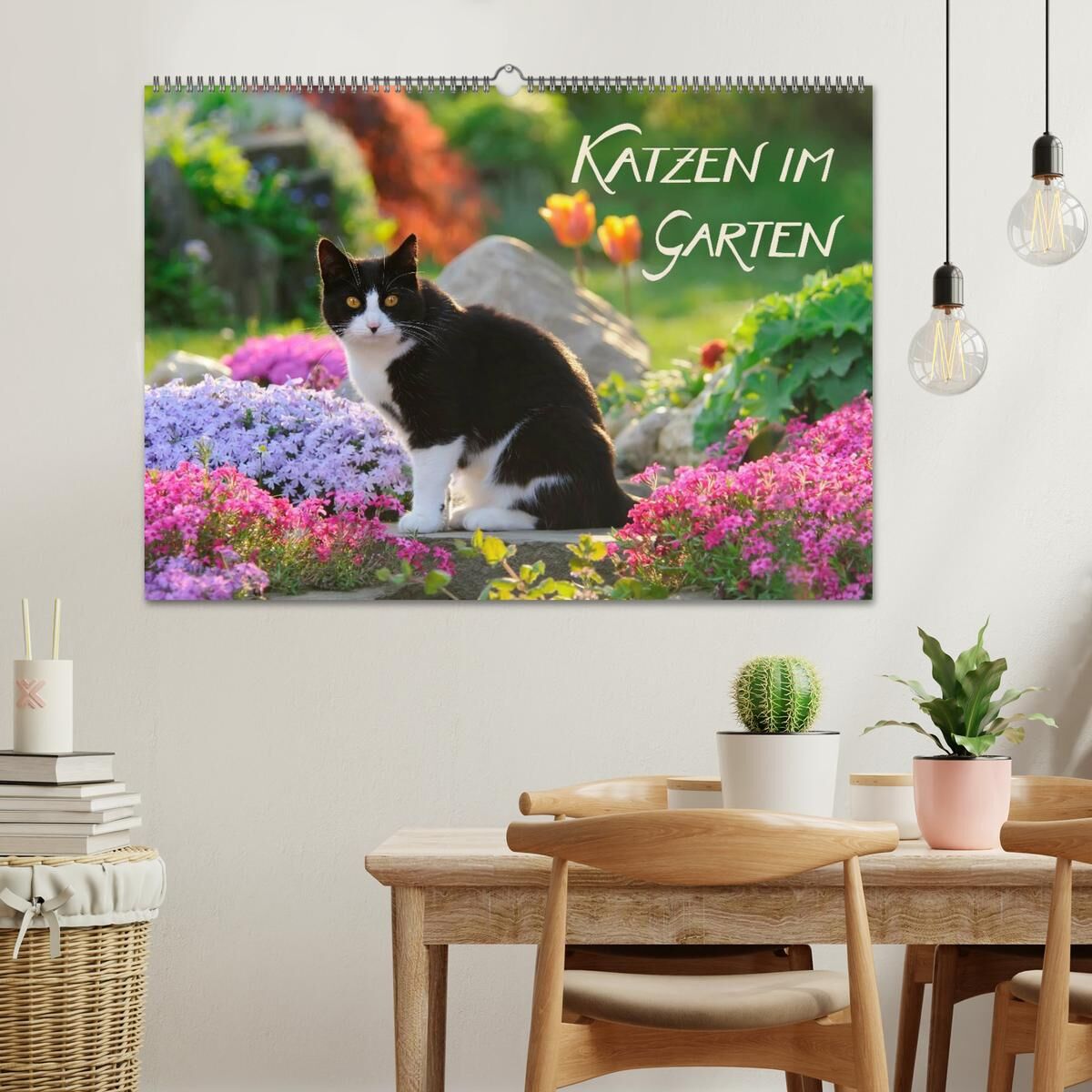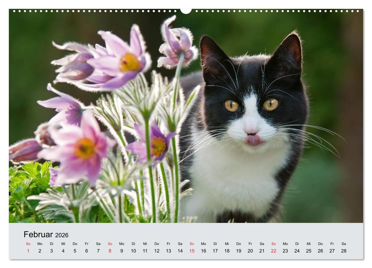 Katzen im Garten (Wandkalender 2026 DIN A2 quer), CALVENDO Monatskalender