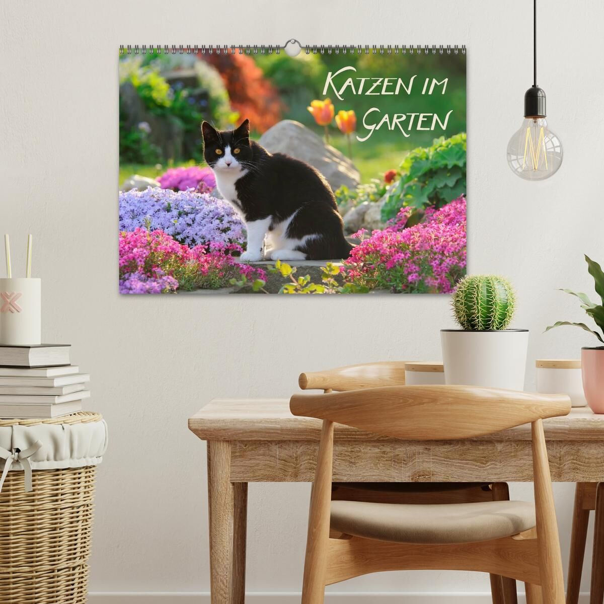 Katzen im Garten (Wandkalender 2026 DIN A3 quer), CALVENDO Monatskalender