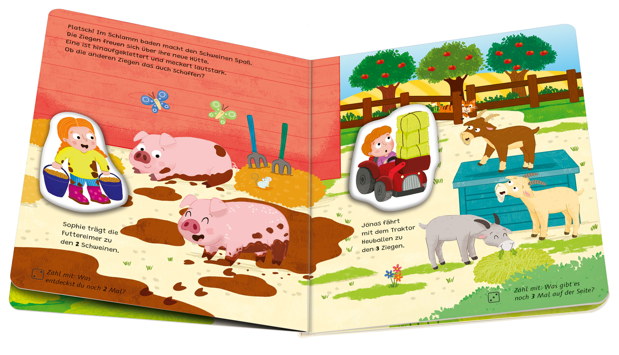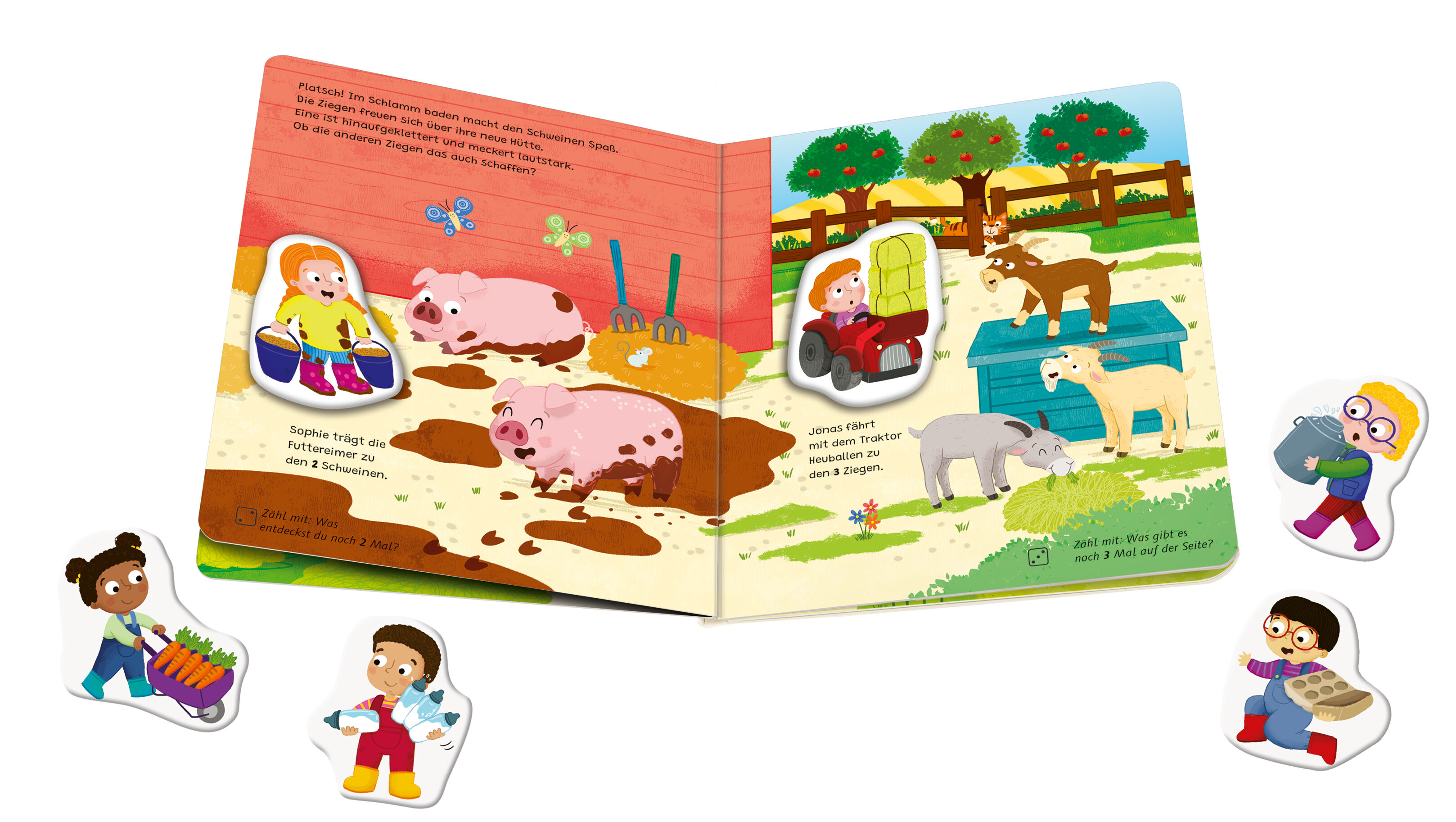 Lustiges Magnetbuch zum Zählen lernen Eine Kuh, zwei Schweine und drei Ziegen auf dem Bauernhof ist viel los! In diesem Magnetbuch können die Kleinen aktiv mithelfen: Wer füttert die vier Lämmer? Kurze Texte helfen ihnen, die Kinder-Magnete auf den magnetische...
