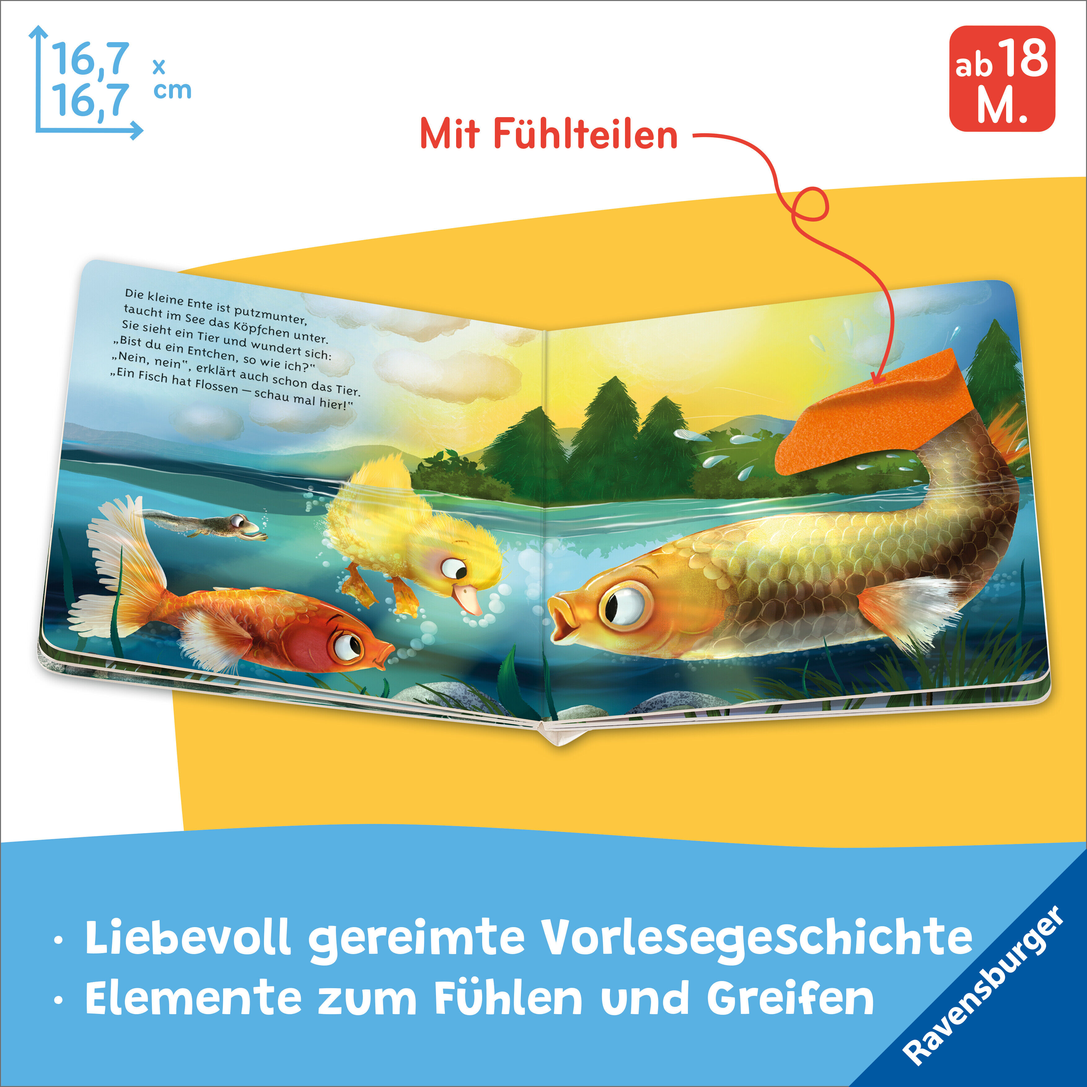 Vorlesen, Fühlen und Staunen Diese liebevolle Vorlesegeschichte nimmt Kinder ab 18 Monaten mit auf eine spannende Entdeckungsreise. Zusammen mit der kleinen Ente erkunden sie die Welt am Wasser. Dabei begegnen ihnen viele verschiedene Tiere. Und die können die...