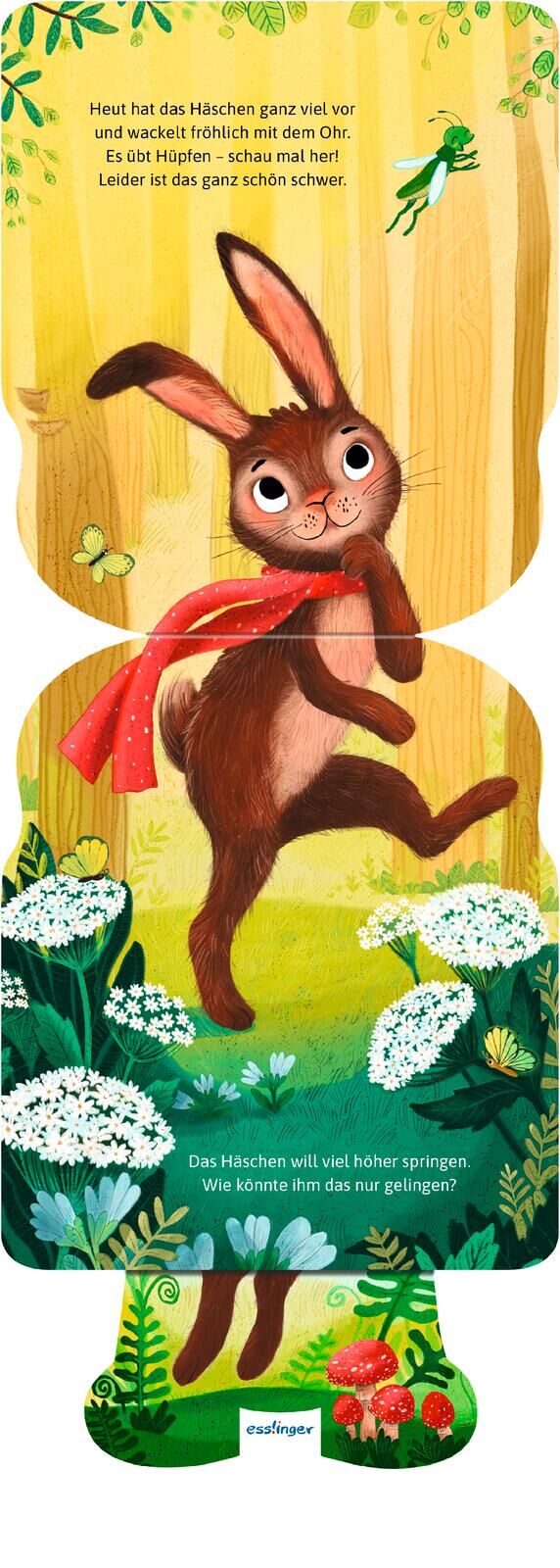 Jetzt kommt Spaß ins Kinderzimmer! Dieses Mitmach-Pappebuch kann hüpfen und besitzt einen witzigen Sound-Effekt. Drückt man die Hasenbeine ins Buch, schnellen sie wieder heraus und der Sound wird ausgelöst. So begleiten Kinder ab 18 Montaten das Häschen durch...