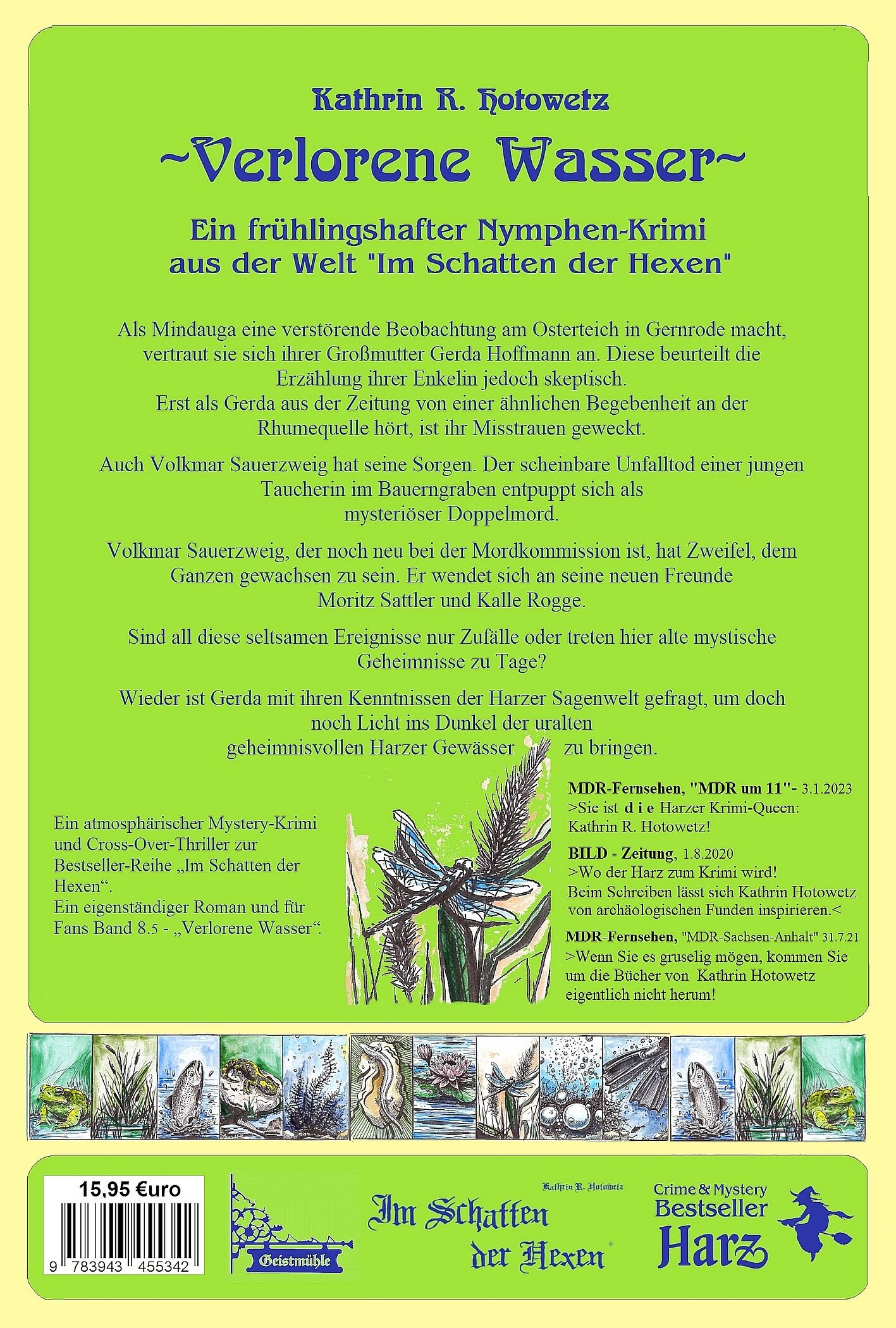 Ein atmosphärischer Mystery-Krimi zur Kultreihe Im Schatten der Hexen, ein frühlingshafter Nymphenkrimi ..... Infotext: Verlorene Wasser, der neue Roman aus der Im Schatten der Hexen-Welt von Kathrin R. Hotowetz, spielt ca. ein Jahr nach den Ereignissen des Bu...