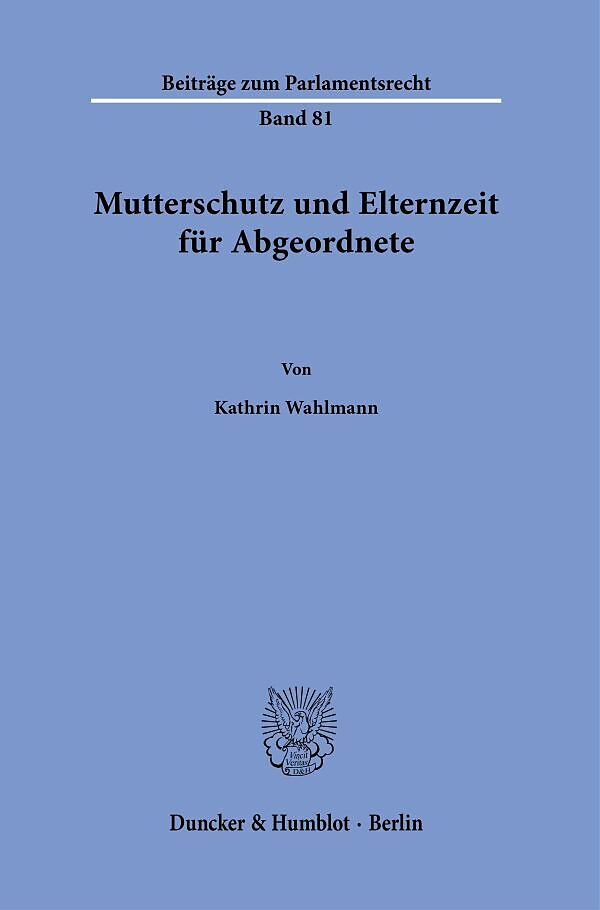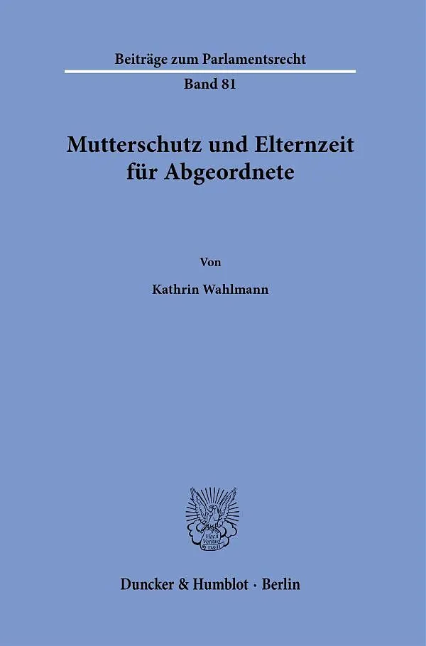 »Maternity Protection and Parental Leave for Members of Parliament« The thesis deals with the question of maternity protection and parental leave for members of the german federal and state parliaments, which has hitherto been largely unresolved in law. After an overview of the only rudimentary current regulations, it works out that there is a constitutional requirement to put in place appropriate regulations. It shows which regulatory options are constitutionally permissible and useful from a parliamentary point of view.